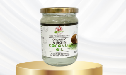 Taste Organic Virgin Coconut Oil is a premium, cold-pressed, unrefined oil extracted from the fresh meat of organically grown coconuts. Bottled with care, this 100% natural oil retains the pure, tropical essence and nutritional richness of fresh coconuts. It is ideal for cooking, baking, skincare, and haircare routines, making it a versatile staple for health-conscious individuals.